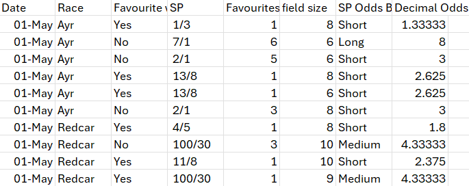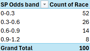 Backing the favourite is a common (and easiest) strategy in horse racing. Instead of guessing, I wanted to examine the numbers to see whether this was effective. In this post, I’m using race data, Starting Price (SP) odds, and a few Excel pivot tables to answer a basic question:
